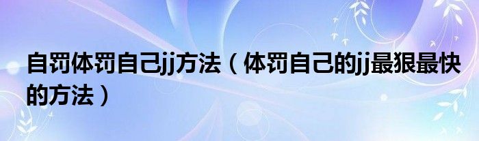 您好,今天帅帅来为大家解答以上的问题。自罚体罚自己jj方法,体罚自己的jj最狠最快的方法相信很多小伙伴还不知道,现在让我们一起来看看吧!